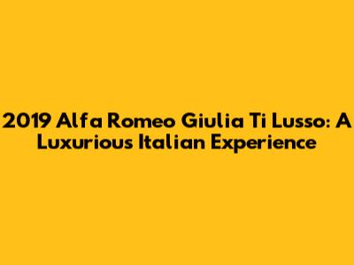 Hey everyone! Today, we're diving deep into the 2019 Alfa Romeo Giulia Ti Lusso. This Italian beauty isn't just a car; it's a statement. It's about passion, performance, and a touch of la dolce vita. If you're looking for a luxury sedan that stands out from the crowd, the Giulia Ti Lusso deserves your attention. So, grab a coffee (or an espresso, if you're feeling authentic), and let's explore what makes this car so special.