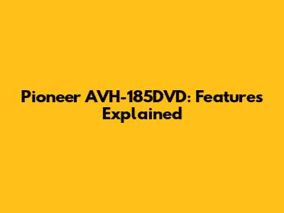 Pioneer AVH-185DVD: Features Explained